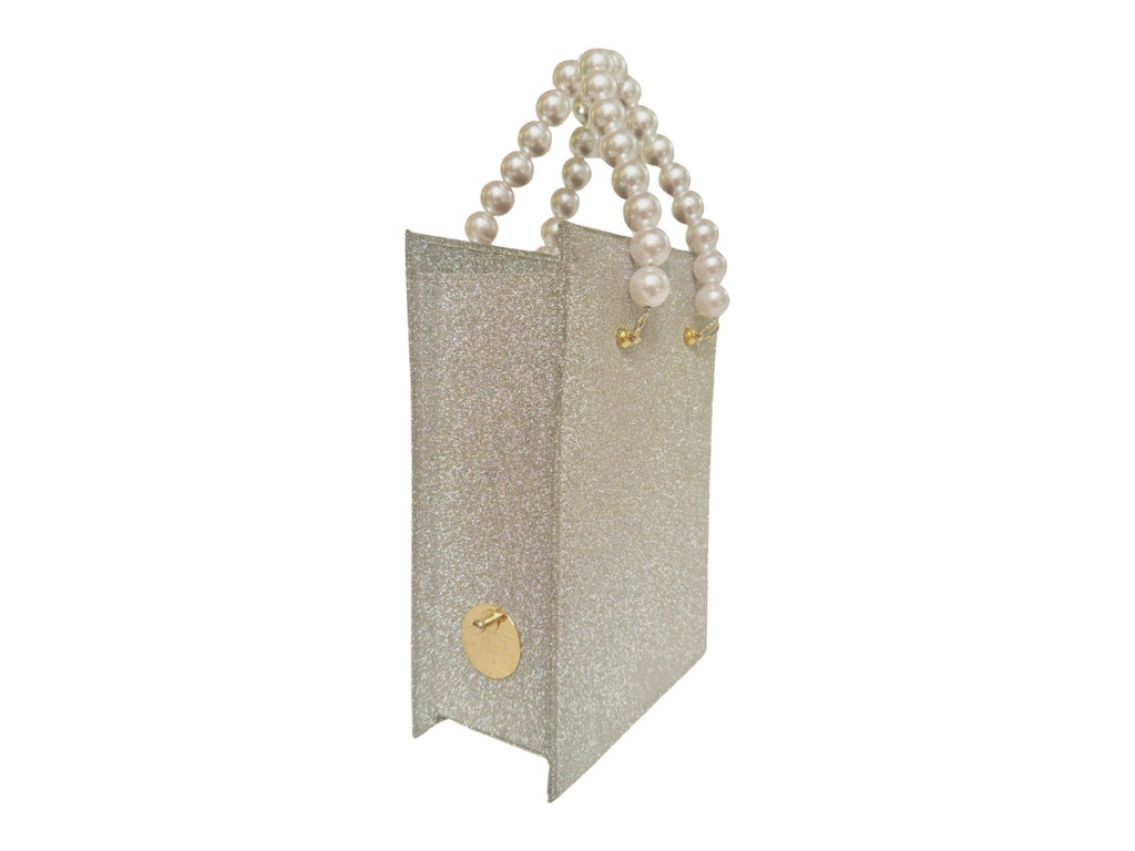 NEW ARRIVAL - Metallic Gray Brick Bag With Pearl Handle